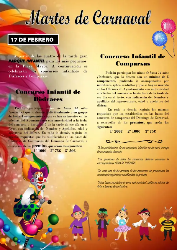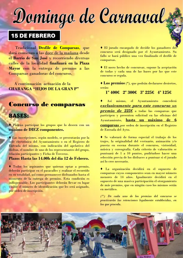 Cartel anunciador de los actos que se desarrollarán en nuestro pueblo durante los carnavales 2026.